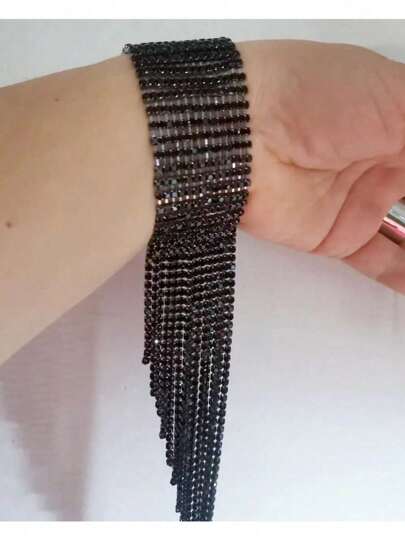 新品上市黑色閃亮全鑲鑽流蘇手鍊 - 新款閃亮滿鑽流蘇手鍊黑色 - 查看 1