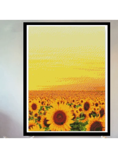 新款十字繡套件,向日葵設計,簡約現代美感,全套繡花,縱向風景,繡品跨境情人必備 - 11CT三股繡棉線 - 查看 3