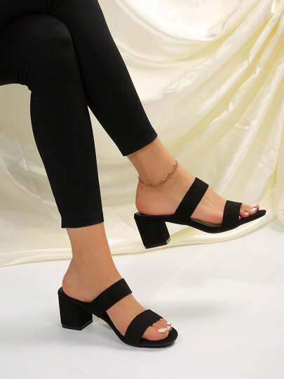 新款流行粗跟金色圓頭女士半拖鞋 - 黑色 - 查看 1