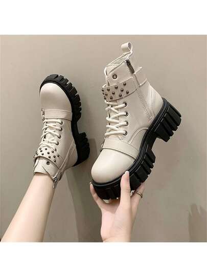 新品到貨心形裝飾側拉鍊時尚女士靴子適用於秋天
