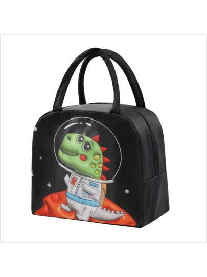 新品高容量3d圖案可愛視覺3d卡通保溫午餐包適用於戶外活動、工作和學校,具有加厚的鋁箔內襯 - 黑色 - 查看 1