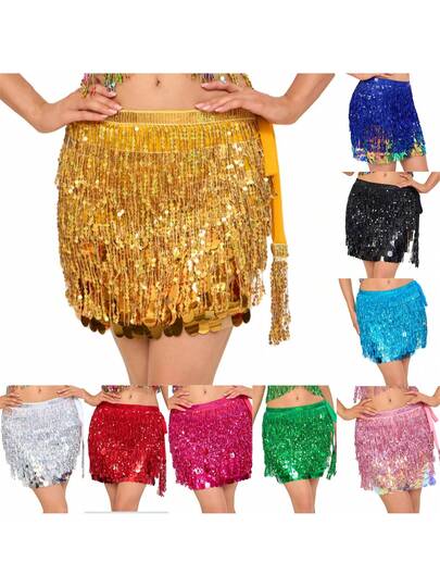 新款肚皮舞表演服装配饰多层流苏亮片腰链性感波西米亚风臀巾腰带 - 彩色 - 查看 1