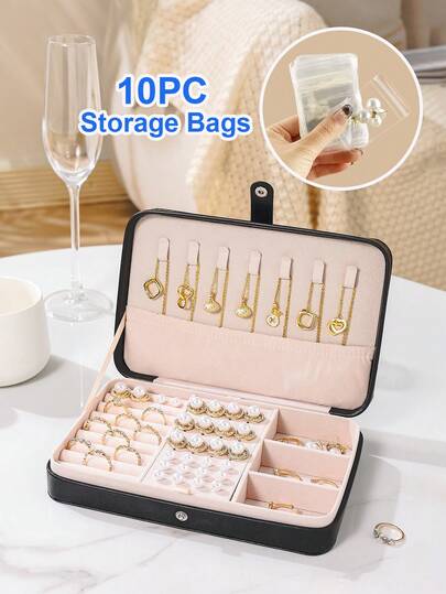 新款黑色轻奢大容量PU皮首饰盒|项链戒指耳环多层隔层收纳|便携旅行珠宝盒|送女友/妈妈/母亲节女友生日情人节|毕业季送同学的精美礼物 - 彩色 - 查看 10