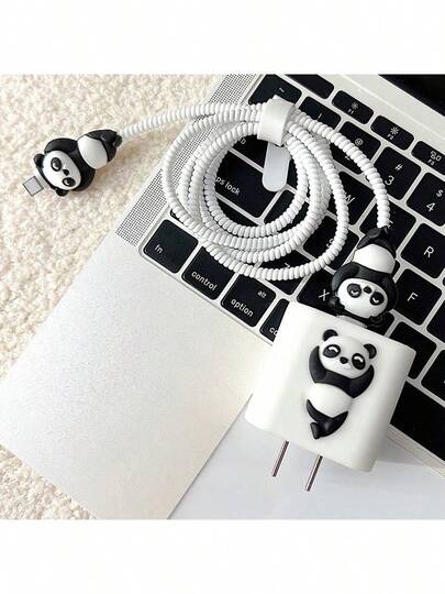 新款卡通熊猫苹果充电器头保护套 绕线器 充电器适配器 数据线保护套 - 白色 - 查看 1