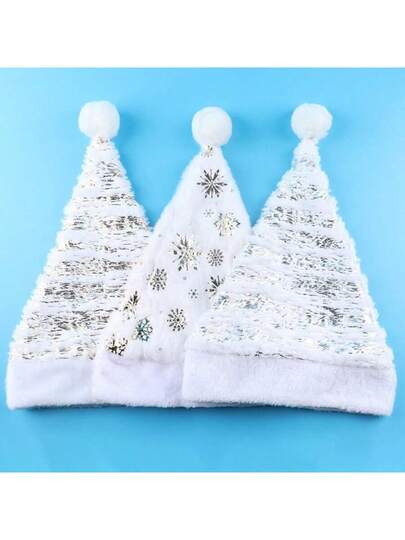 全新圣诞帽烫印星星雪花毛绒帽子圣诞节白色仿兔毛绒派对装饰配件 - 彩色 - 查看 1