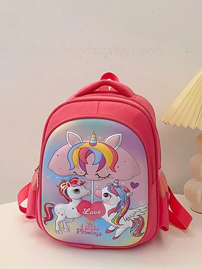 新款時尚卡通獨角獸兒童肩袋,可愛背包,新潮卡通學校書包,可調節拉鍊背包,適合送禮 - 粉色 - 查看 1