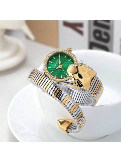 新款时尚休闲蛇形钻石女士石英表,日常佩戴和礼物,蛇形手表 - 彩色 - 查看 1