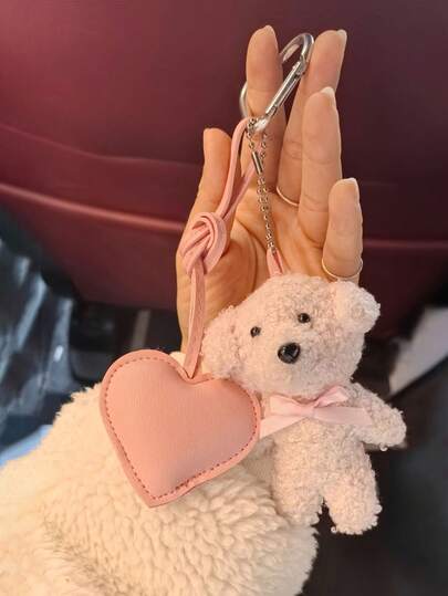 新款植绒钥匙扣 - 植绒小狗吊坠,心形,可爱玩偶,粉色可爱挂饰,创意小礼物,适合挂在包包上,送给朋友、学生等的礼物。 - 淺粉色 - 查看 7