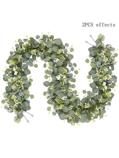 1/2/50件套人造尤加利花环,白色花朵,5.9英尺/180厘米银色尤加利叶满天星花环,仿真绿植藤蔓,适用于婚礼、派对、壁炉、桌旗、家居装饰、房间装饰、浴室装饰、办公室装饰、卧室装饰、夏季装饰、人造植物 - 蘋果葉藤條-綠 - 查看 6