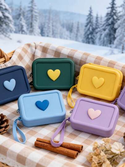 新款心形硅胶化妆包,旅行化妆包,便携式化妆包,防水化妆品收纳包,洗漱包,化妆刷收纳盒,化妆品收纳盒,首饰盒,收纳袋,口红包,手机包,数码电子产品收纳包,沙滩必备旅行包,女士礼物,情人节礼物 - 彩色 - 查看 10