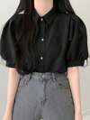 Jeta Ari 女士优雅新款时尚海滩度假休闲单肩超长袖褶饰金属装饰白色衬衫