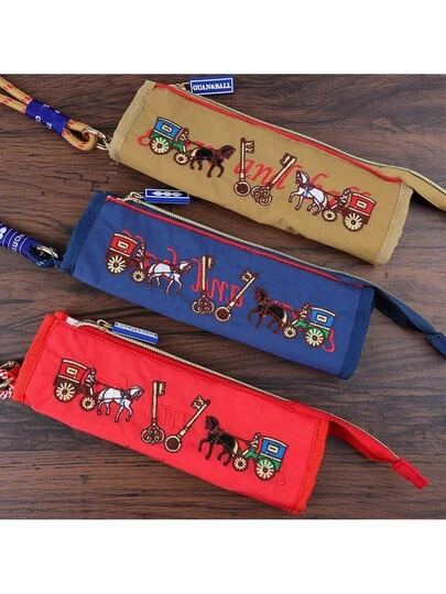 新款日式刺绣化妆收纳包时尚防水便携收纳袋零钱包铅笔袋女士钱包迷你钱包钱包腕包旅行钱包零钱包 - 彩色 - 查看 15