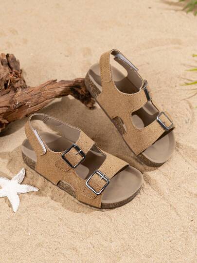 新款儿童防滑耐用软底时尚简约勃肯鞋风格沙滩凉鞋 - 卡其色 - 查看 1