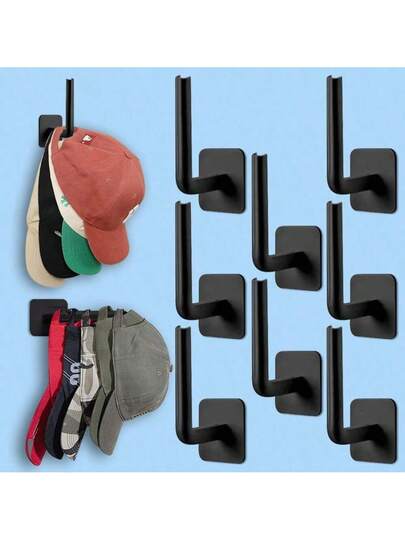 New L-Shaped Hat Hook, Baseball Cap Hook, Coat Hook, Adhesive Hook, No Trace, No Punching, Hat Hook, Simple Storage Back To School - 黑色 - 查看 1
