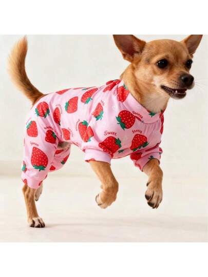 新款宠物服装,猫狗睡衣,适合中小型犬,例如泰迪犬、博美犬、吉娃娃、蜜蜂和草莓图案。 - 淺粉色 - 查看 1