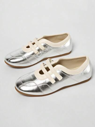 新款春秋时尚英伦风低帮芭蕾平底系带休闲玛丽珍鞋 - 銀色 - 查看 1