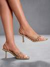 春夏女士交叉绑带细高跟凉鞋,优雅黑色纯色踝带凉鞋