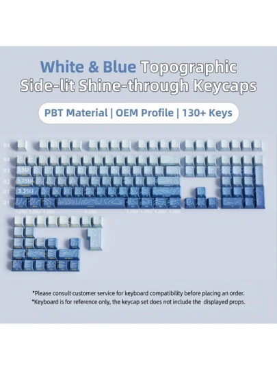 全新 Topographic 4.0 版本透光 133 键 PBT 材质 Cherry 原厂高度侧印背光键帽,适用于 MX 游戏机械键盘 - 淺藍色 - 查看 1