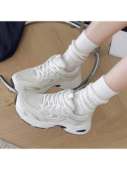 全新男女款休闲运动鞋,时尚厚底运动鞋,百搭情侣鞋,四季皆宜 - 白色 - 查看 1