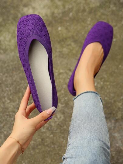 全新女式休闲纯色平底乐福鞋低帮户外鞋 - 紫色 - 查看 1