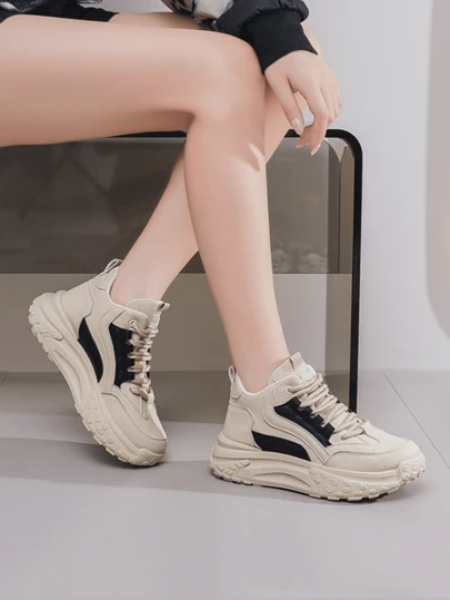 新款女士运动鞋,时尚简约纯色低帮拼接跑步鞋,软底舒适透气防滑休闲运动鞋,适合户外运动、跑步、徒步、家庭聚会、通勤、骑行、多功能 - 黑色 - 查看 1