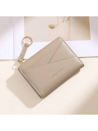 新款女士钱包钥匙扣不对称设计超薄紧凑型对折拉链零钱包女士零钱包迷你钱包小钱包可爱钱包卡包 - 灰色 - 查看 1