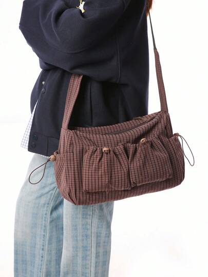 新款女士多口袋单肩包,尼龙柔软休闲斜挎包,大容量多功能手提包,适合返校季 - 酒紅色 - 查看 1