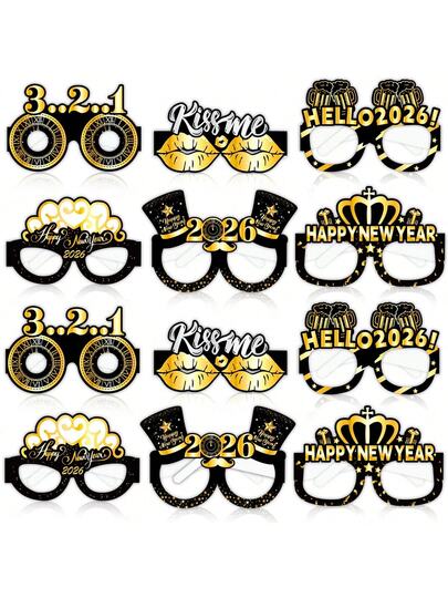 2026新年派对眼镜 | 黑金3D纸质眼镜 | 嘉年华拍照道具 | 节日庆典用品 | 随机1个 - 彩色 - 查看 2