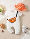 SHEIN 男嬰字母和心形圖案拼接邊連身褲