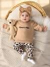SHEIN 女婴秋季新款两件套,棕色碎花长袖圆领按扣上衣,休闲宽松长裤,复古时尚舒适百搭套装