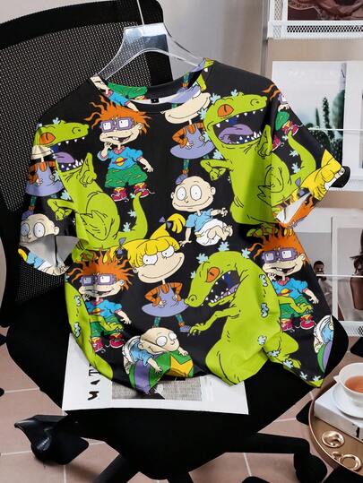 Nick 90s | SHEIN 女式休闲卡通全身印花圆领短袖T恤,夏季 - 白色 - 查看 1