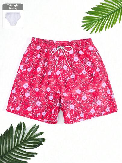 Surfspeed 男款有束繩腰帶的花卉印花沙灘短褲,寬鬆剪裁 - 彩色 - 查看 1