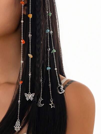ROMWE Fairycore 5 件时尚简约星星、月亮、蝴蝶水晶串珠链头带发链头饰头饰饰品 - 彩色 - 查看 1