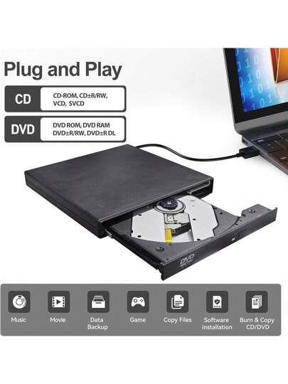 External CD DVD Drive, USB 2.0 Slim Portable External CD-RW Drive DVD-RW Burner Writer Player For Laptop Notebook PC Desktop Computer - 黑色 - 查看 5