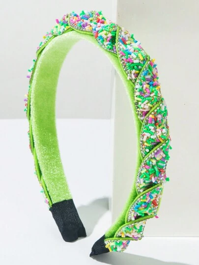 1 件彩色塑料珠装饰编织头带,时尚简约优雅,适合舞会、发饰 - 綠色 - 查看 1