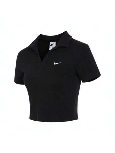 Nike 2024 女士 NSW Essential SS Polo 短款上衣 - 黑色 - 查看 1