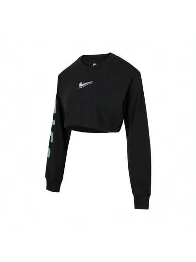 Nike 女式 AS W NSW LS  CROP TEE B2S 长袖针织圆领 T 恤 THV5006-010 - 黑色 - 查看 1