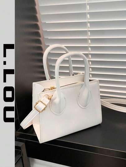 迷你方形包,时尚纯色百搭女士单肩斜挎包,新款多用途双手柄女士手提包,口红盒 - 白色 - 查看 1