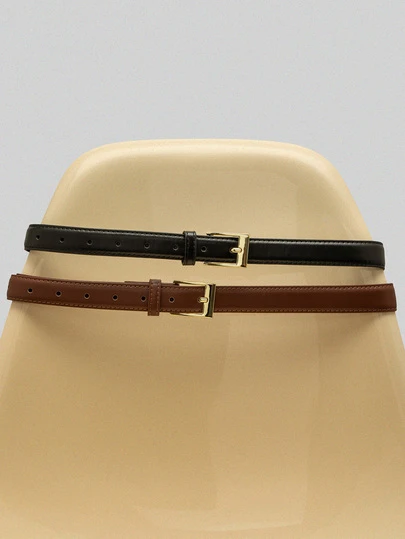 NobleVue 3条金色方扣日常真皮腰带,时尚优雅,适合搭配连衣裙、T恤、休闲裤,女士夏季、秋季、万圣节等场合。 - 彩色 - 查看 2