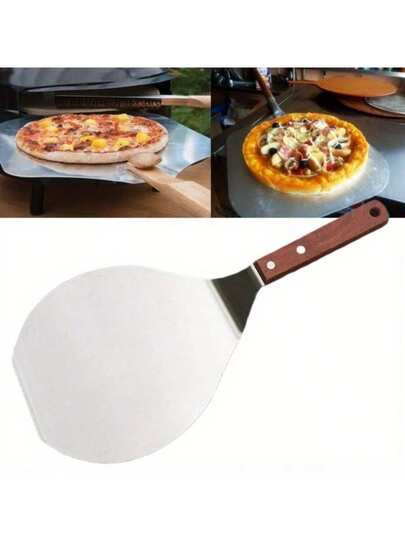 不粘糕点不锈钢厨房铲子圆形铲子披萨铲铲子挂孔烘焙工具蛋糕铲厨师 - 顏色隨機 - 查看 1