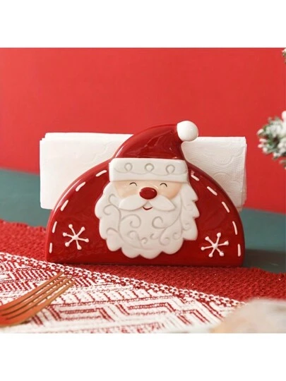 北欧圣诞老人陶瓷马克杯,可爱卡通创意浮雕圣诞餐巾架和纸巾盒 - 餐巾架 - 查看 1