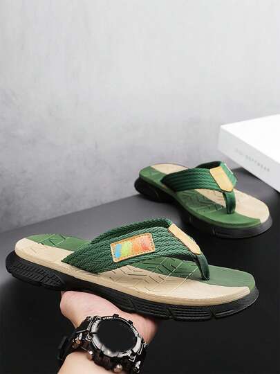 男士人字拖,夏季户外穿着,舒适防滑,户外运动休闲沙滩凉鞋 - 軍綠色 - 查看 1