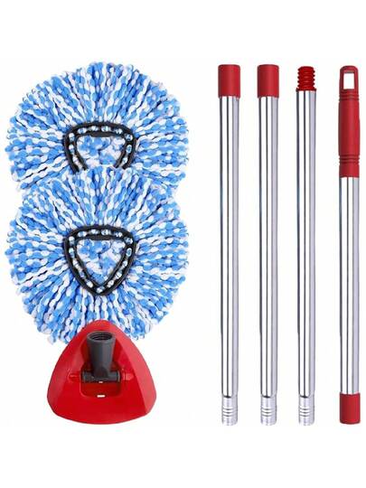 Spin Mop Head, Base, Handle Replacement For  Microfiber Spin Mops, 2 Microfiber Mop Refills, 1 Triangle Head Cover And 30-58in Handle Set Combo (White(1 Tank System)) - 藍色(雙罐系統) - 查看 1