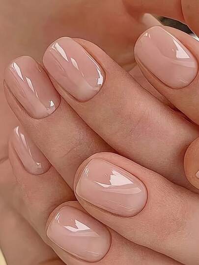 裸色方形短款按压式指甲套装 - 亮面效果,纯裸色调,易于粘贴假指甲套装 美甲用品 美甲 - 杏色 - 查看 5