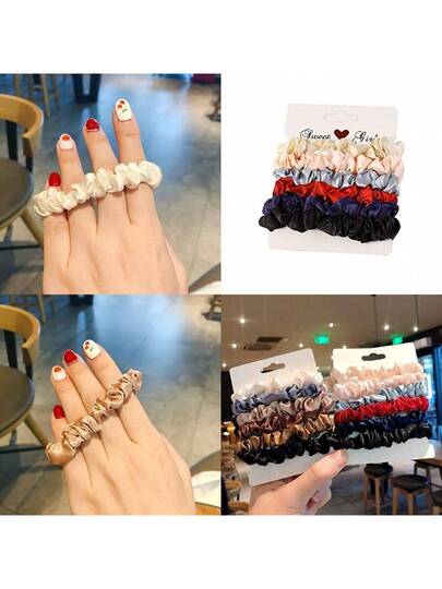 Silk Hair Scrunchies Small Silk Scrunchy Skinny Hair Ties Bows Elastics Hair Bands Soft Scrunchy Hair Tie Ropes Ponytail Holder For Women Girls Hair Accessories 6 Pack Elegant - 如圖 - 查看 6