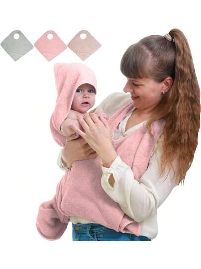 Baby Hooded Towel, Hands Free Baby Bath Towel, Soft And Absorbent Cotton Baby Towels For Newborns, Apron Towel, Personalized Baby Gifts For Boys And Girls - 淺粉色 - 查看 1