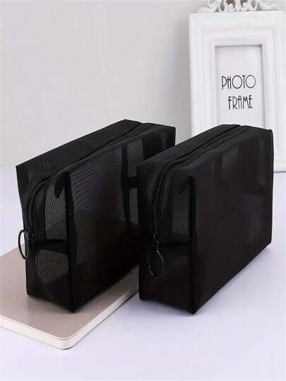 尼龙网眼化妆包盥洗袋大容量收纳化妆包 - 黑色 - 查看 10