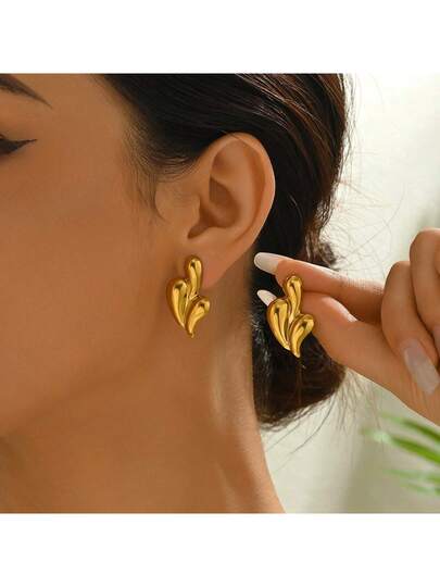 1 对不锈钢 18K 金几何水滴形耳环,复古优雅百搭,适合女性日常工作、通勤、派对佩戴,送给女友、朋友的礼物 - 金色 - 查看 1