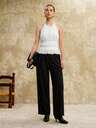 Ontre 女士长款海军蓝连衣裙,带口袋,褶皱西装面料,纯色无袖,时尚,适合春夏季,优雅淑女装,舒适休闲装,商务休闲办公装,低调复古风格,高品质都市通勤,高端机场时尚,优质材料