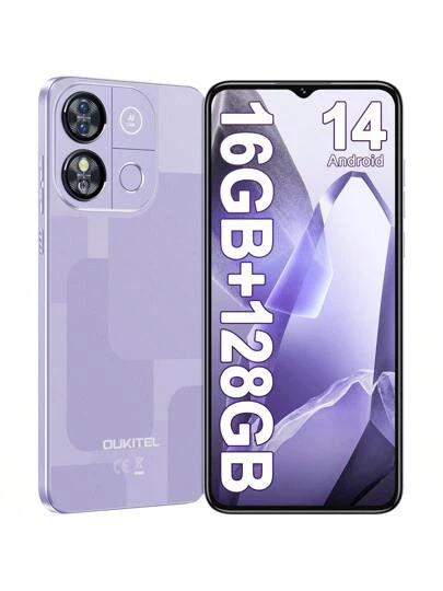 OUKITEL C57 Pro 无锁智能手机,16GB+128GB/1TB,Android 14 操作系统,6.52 英寸显示屏,4300mAh 电池,八核处理器,1300 万像素摄像头,支持 4G 双卡双待,指纹/面部识别,GPS,3.5mm 耳机插孔(欧版) - 紫色 - 查看 1